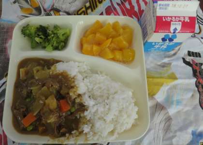 今日は、2学期の給食最終日でした。献立には、大人気の冬野菜のカレーライスも!交流給食だったので、おいしさも楽しみも倍でした。毎日おいしい給食を作ってくださった給食調理員さん、栄養教諭の先生ありがとうございました。ごちそうさまでした。