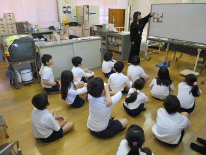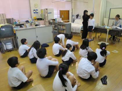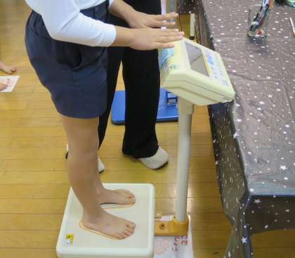 身長と体重の測定の他にも手足の爪の検査もありました。また、養護教諭の先生から眼の大切さについて教えていただきました。どうして眼が疲れるのかを一緒に考えながら学習しました。