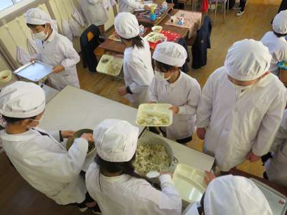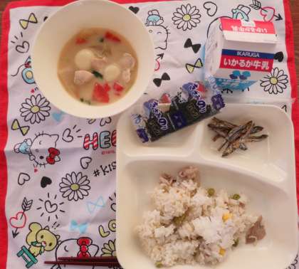 今日の給食は「れんこんのちらしずし」や「ぞう煮」や「ごまめ」といった、正月にちなんだ献立が出ました。お正月気分に戻っておいしくいただきました。今月は、他にもおせち料理にちなんだ献立も出ます!楽しみです。