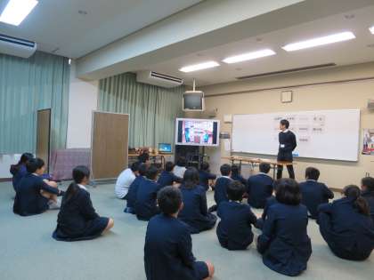 中央府税事務所からゲストティーチャーに来ていただいて、租税教室を行っていただきました。税金の大切さを考えるビデオを見たり、税金のクイズもしたりしました。税について考えるよい機会になりました。ありがとうございました。