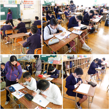 3時間目、算数の学習。2つの表を見ながら、わかることを読み取り、考えていました。