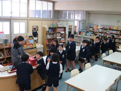 1時間目の休み時間、図書室前の廊下は大行列ができていました。今日から図書委員が作ったしおりのおみくじができるからです。早くおみくじひきたい!!わくわく。