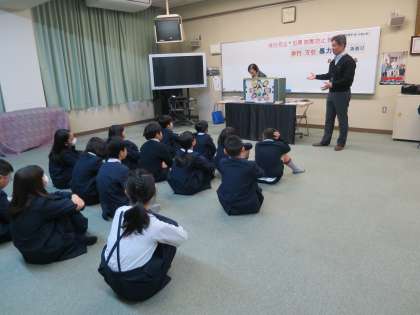 大阪市中央少年サポートセンターからゲストティーチャーをお迎えし、非行防止教室を開いていただきました。万引きについてペープサートを使って教えていただいたり、110番ダイヤルの使い方について実際に背景を見ながら学習したりしました。ありがとうございました。
