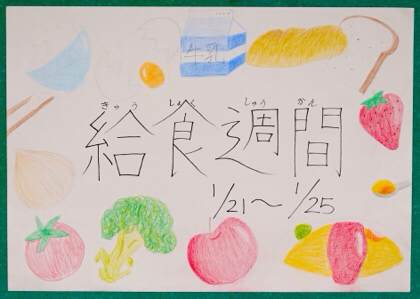 今日から25日(金)までは、給食週間です。給食に携わるすべての方々に感謝していただきます。いつもおいしい給食をありがとうございます。