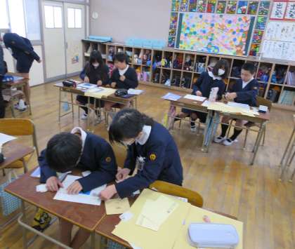 卒業をお祝いする会に向けて、5年生のリーダー会を行いました。先生の説明が終わりリーダー会が終わったのに、休み時間返上で早速プレゼントの色紙の製作に取り組む5年生!頼もしいです。