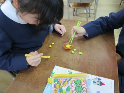 久しぶりの雨になりました。教室で友達と過ごす雨の日の休み時間も、なかなか楽しそうです。どうぶつしょうぎに、おまめつかみに、こま・・・。