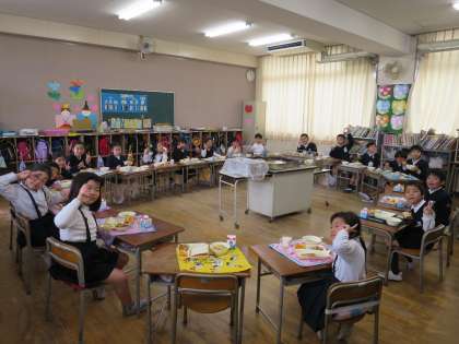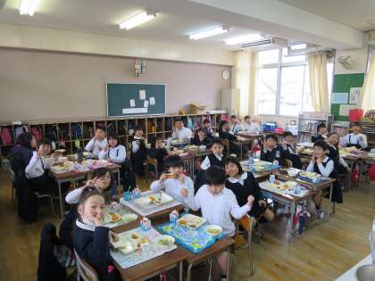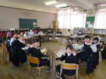 今日で今年度の給食が終わります。最後の給食も、みんなでおいしくいただきました。いつもおいしい給食を作ってくださった給食調理員さん、栄養教諭の先生、ありがとうございました。