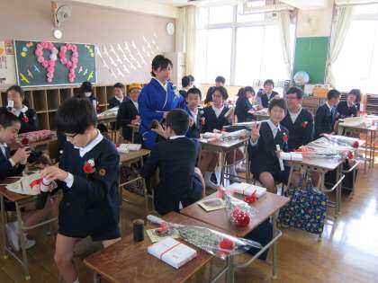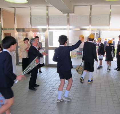 教室に戻り、いざ別れの時がきました。5年生・教職員・保護者様・ご来賓の皆様の花道を通って学校を巣立っていきました。卒業おめでとうございます。