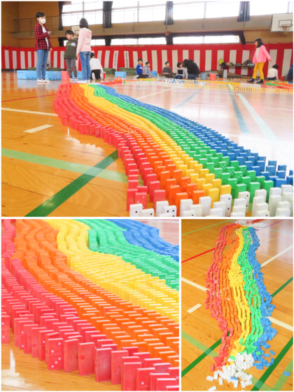 24日(日)に行われたチャレンジドミノ in きたつる。自分たちがならべたドミノが、想定どおり連鎖して倒れていく様子を思い浮かべながら、必死でならべた2時間30分。悲喜こもごもも、当然ありました。