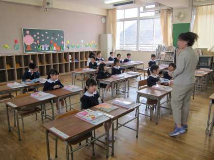 今日は、本校の入学式でした。かわいい21名の児童が入学しました。桜も満開、笑顔も満開です。ご入学おめでとうございます。お兄さんお姉さんに教室まで案内してもらい、開式までちょっと緊張しながら待っています!