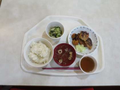 一日目の海での活動が終わり、入浴をすませて夕食をいただきました。ご飯とお汁はおかわりができ、もりもりいいただきました!