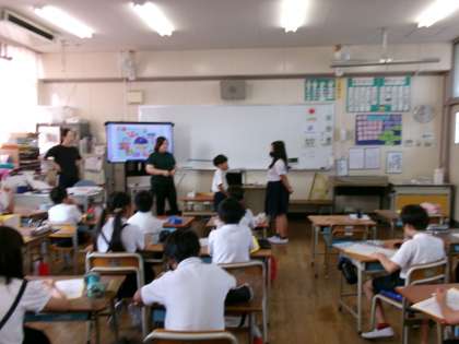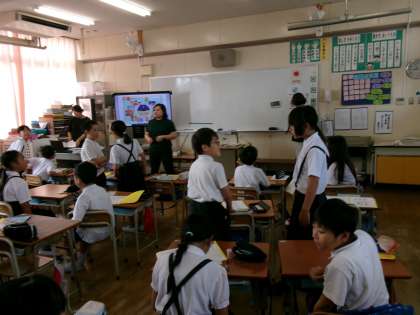 となりの友だちと交流をした後は、みんなの前でもあいさつ。