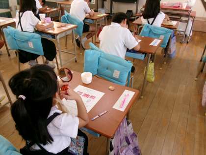 お家でも、鏡を見ながらみがき残しのないようにしっかり歯をみがいて、歯を大切にしましょう。