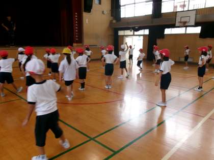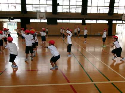 先生のお手本のダンスをしっかり見ながら体を動かし、音楽に合わせてどんどん流れを覚えていきます。