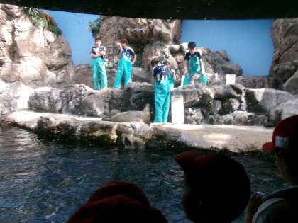 水族館の中に入ると、ちょうどアシカのお食事タイムが始まっていました。