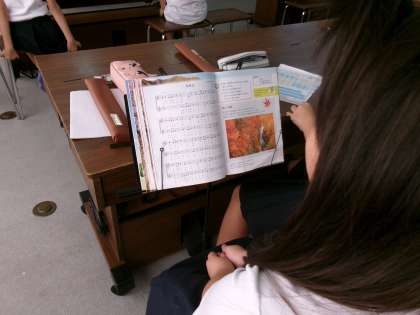 秋の深まりを感じる季節。音楽の授業では、「もみじ」の二部合唱に取り組んでいました。子どもたちは、赤や黄色に色づく木々を思い浮かべながら、高音と低音の重なりを楽しみながら歌っていました。