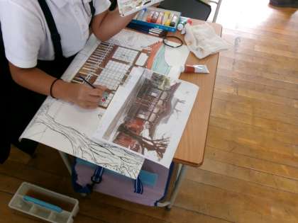 影の様子や光の差し加減など、筆を使い分けたり、水の量を調整したりして丁寧に仕上げていました。