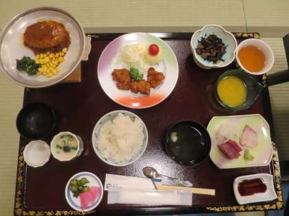 楽しみにしていた夕食です。たくさんの種類の料理が並べられています。おいしくておかわりする子も多かったです。ごちそうさまでした。