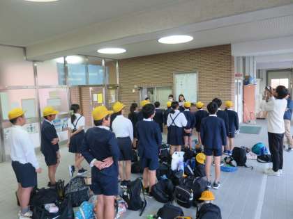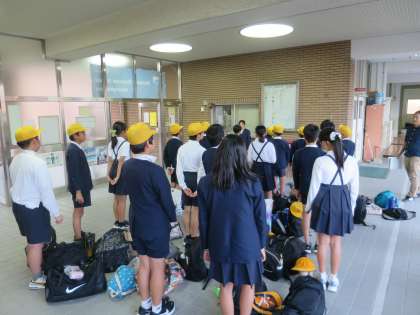 学校に到着すると、保護者の皆様や先生方が迎えてくれました。帰校式では、楽しかった修学旅行の感想も発表しました。思い出いっぱいの修学旅行になりました。ありがとうございました。