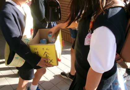 募金箱に入れて持ってきてくれる友だちや、地域のみなさんにも協力していただきました。