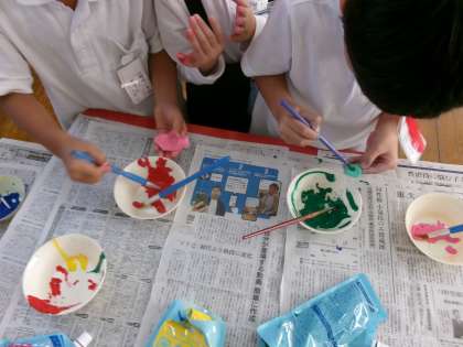 作品展にむけて、1年生はおいしそうなものを作っていました。