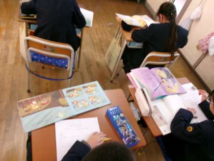 今日はお気に入りのページを探し、作品のイメージ図をワークシートに書き込んでいました。
