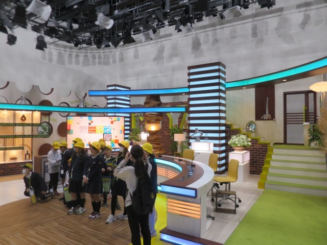 読売テレビへ社会見学に行きました。お天気キャスターの方が監修をされた四季折々の植物が育てられている庭園を見学したり、実際のスタジオを見学したりしました。テレビ局で働いておられる方々の様子も見学することができました。