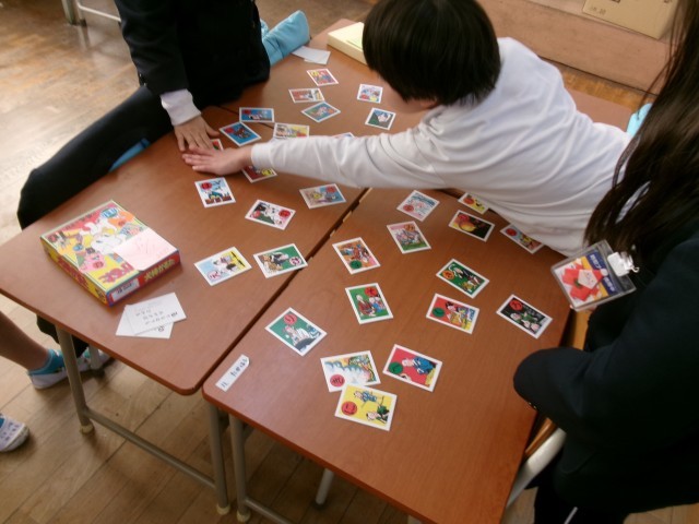 今年はうま年です。この干支も、むかしからつたわることばです。年が明けてはじめての国語はみんなでいろはかるたを行いました。むかしのことばに触れながら、グループで読み札を交代で読みながら楽しんでいました。