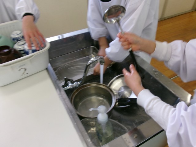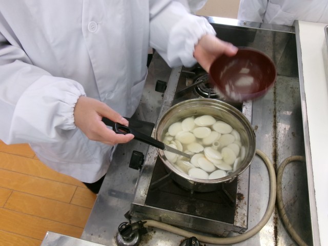 今日の調理実習は「トックスープ」を作りました。日本のお正月におせち料理を食べるように、韓国でもお正月の料理があります。トックスープもその一つで、白いスープと白いトックは新しい年をきれいな心で迎えるという願いが込められているそうです。子どもたちは手際よく野菜を切り、グループで協力してあっという間に出来上がりました。食べ終わったあとの後片付けもていねいに行い、家庭科室をピカピカにしてくれました。