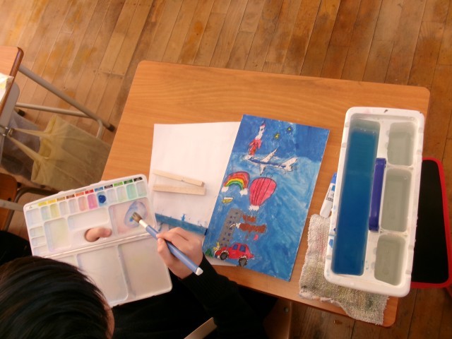 図画工作では、コリントゲームの制作を進めています。今日は、土台となる板に絵を描いたあと、ビー玉を飛ばすためのレーンの組み立てを行いました。作業にも慣れてきて、いよいよ釘打ちの工程に進みそうです。子どもたちからは、「早く釘を打ってみたい」「完成したら遊ぶのが楽しみ」といった声がたくさん聞かれ、意欲いっぱいで取り組んでいます。完成に向けて、これからの作業も楽しみですね。