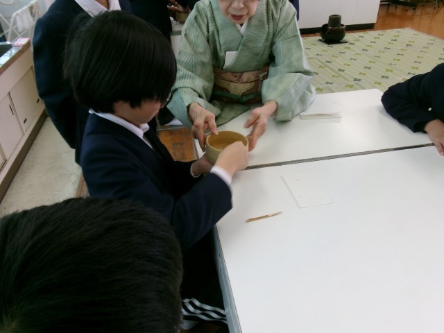 地域でご活躍されている裏千家の先生をお招きし、茶道体験を行いました。お茶のたて方、そしておもてなしの心が込められたあいさつの仕方などを教えていただき、実際に自分たちでお茶をたてる体験をしました。初めて茶筅を使う児童も多く、真剣に一つひとつの所作に取り組んでいました。この学習を通して、相手を思いやる気持ちや、丁寧な所作の大切さを学ぶ貴重な時間となりました。