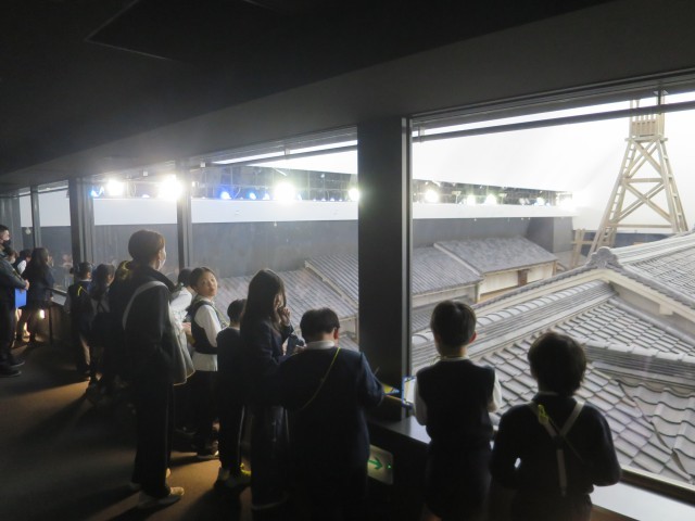 長い長い天神橋筋商店街を通って、大阪くらしの今昔館に行きました。アイロンや洗濯機、電話など昔の道具を展示体験したり、江戸時代の大阪にタイムスリップして街並みを歩いたりしました。