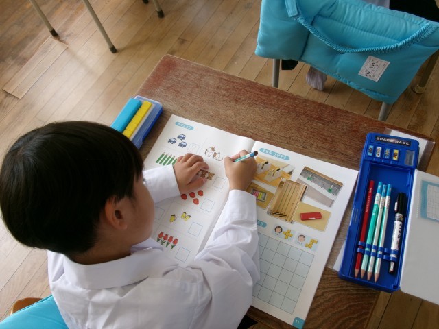 学校生活にも慣れ、1年生も本格的に学習を始めています。先日、数字の書き方を学習した1年生は、生き物や身の回りの物の数を自分で数え、丁寧にマスの中へ数字を書き入れていました。難しい数字は書き直したり、もう一度数を数え直したりしながら、集中して学習することができていました。