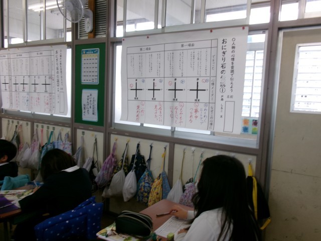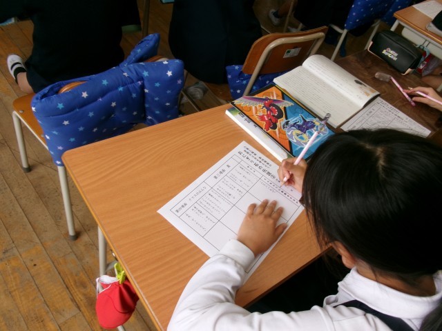 物語文「おにぎり石の伝説」の学習では、題名からどんなお話なのか想像がふくらみ、子どもたちも興味津々です。 今日は、登場人物の心情の変化を考えながら音読を工夫するためのワークシートに取り組みました。 声の明るさ・大きさ・速さをどう変えると気持ちが伝わるのかを考え、登場人物の気持ちを想像しながら一生けんめい書いていました。 これから実際に音読するとき、今日考えたことが生かされていきそうです。