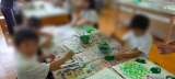 はっぱに絵の具をぬってぺったん 子どもたちは楽しそうに作品作りに取り組んでいまし...