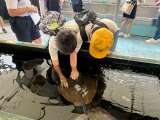 この水槽の生き物には、触れることができました! おそるおそる、手を入れてみると…...