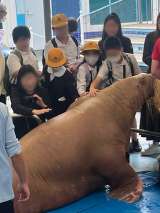 セイウチのショーを観ました。大きくて大迫力!! 背中にタッチもできました♪