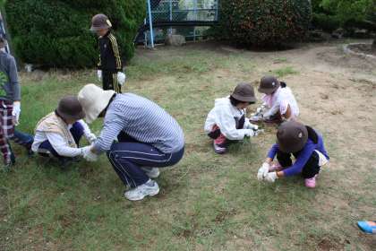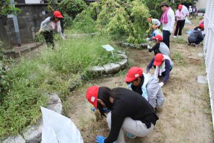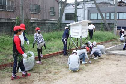 9月4日、全校児童で運動場の除草作業をしました。夏休み中に伸びた草を抜き、運動場もすっきりきれいになりました。