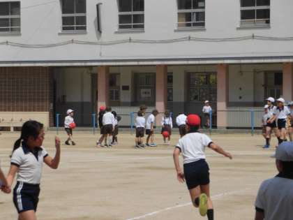 運動場では、元気に遊ぶ子どもたちの姿が見られます。