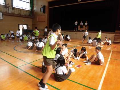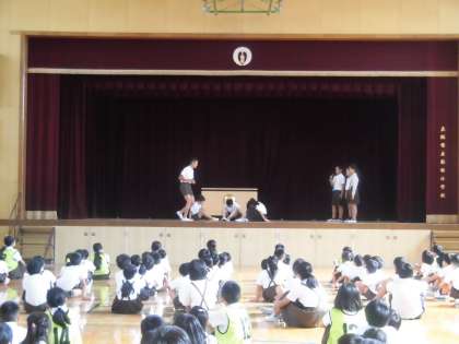 はじめに、集会委員が見本を見せます。