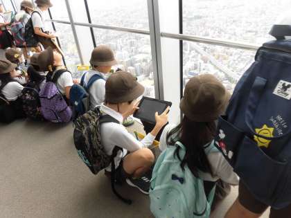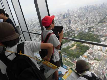 展望デッキまでエレベーターで一気に上がり、普段なかなか見ることができない大阪市の全体の様子を見ました!
