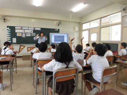 桃谷中学校英語教諭の我妻先生による外国語の学習がありました!
