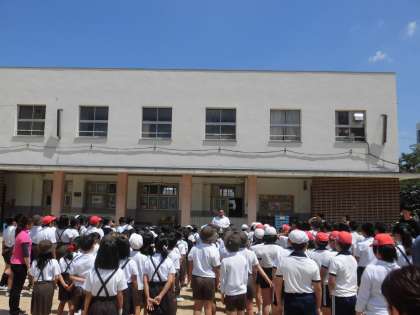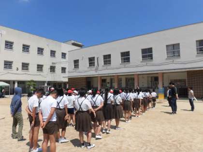 今日は、学校玄関付近に不審物があることを想定した避難訓練が行われました。
