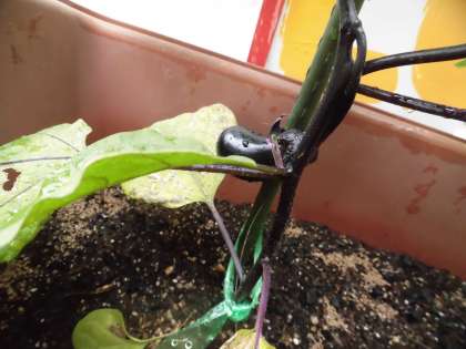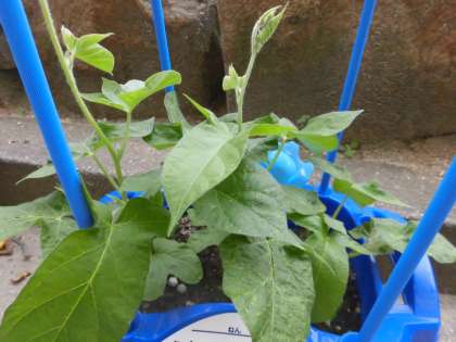 校庭の栽培園や植木鉢に植えた植物たちが大きく育ってきています。この時期、人間にとっては嫌な雨も植物にとっては、大きな栄養。日光もあびて、実をつけたり、葉っぱが大きくなってきたり、つるを伸ばし始めたりと成長している姿が見られます。なんの植物なのか、よく見てね1