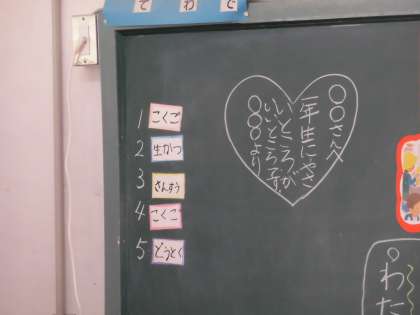 2年生は、道徳の「いいところ みいつけた」の学習を通して、自分や友達の良いところを考えました。最後に、ハートカードに、友達の良いところを書いてみんなで交流しました。優しさあふれる言葉がいっぱいでした。