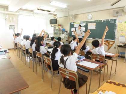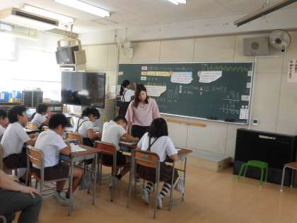 5年生は、小数の割り算の文章題について学習しました。何算になるのか、問題場面を数直線を使って表すとどうなるか、立式はどうなるか、などのことを既習事項を使って一人一人考え、発表しました。いろいろな友達の考えを聞いて、問題に対する理解を深めることができました。