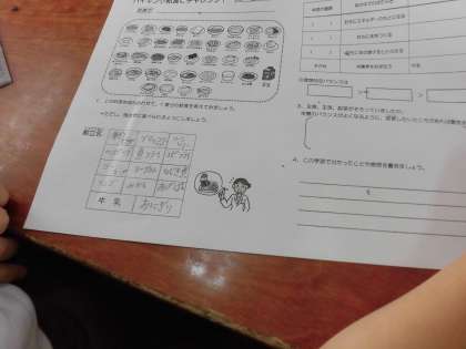 プリントに書いてある食材を使って、自分で選ぶバイキング給食にチャレンジ!