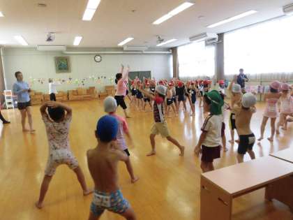入る前には、みんなでしっかり体操をしましょう!