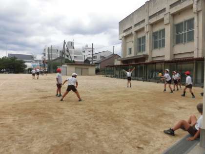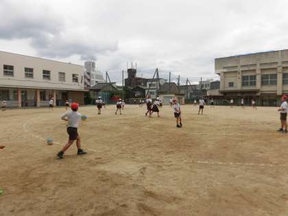5年生と3年生は、一緒にドッジボールをしていました^^