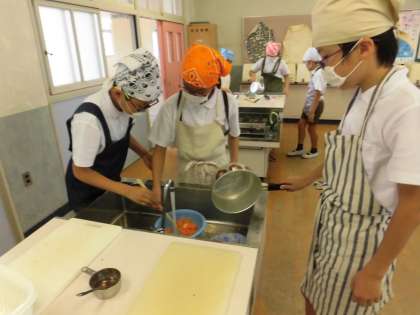 5年生の家庭科では、調理実習をしました。